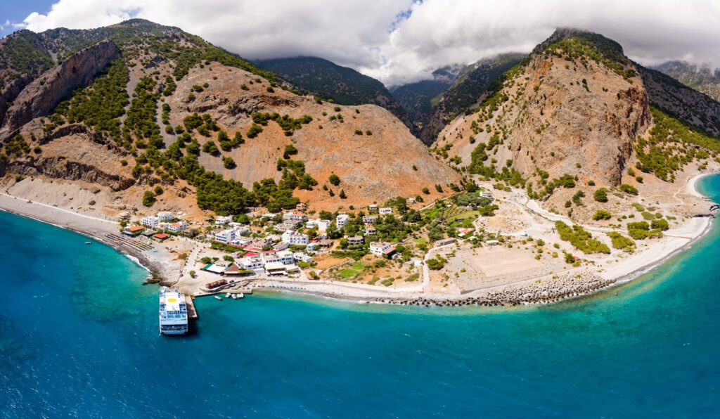 La rotta perfetta per gli amanti del trekking! Agia Roumeli è il punto d’arrivo della celebre Gola di Samaria. Arrivarci via mare dopo una lunga camminata è un sogno. 🧗♂️🍃