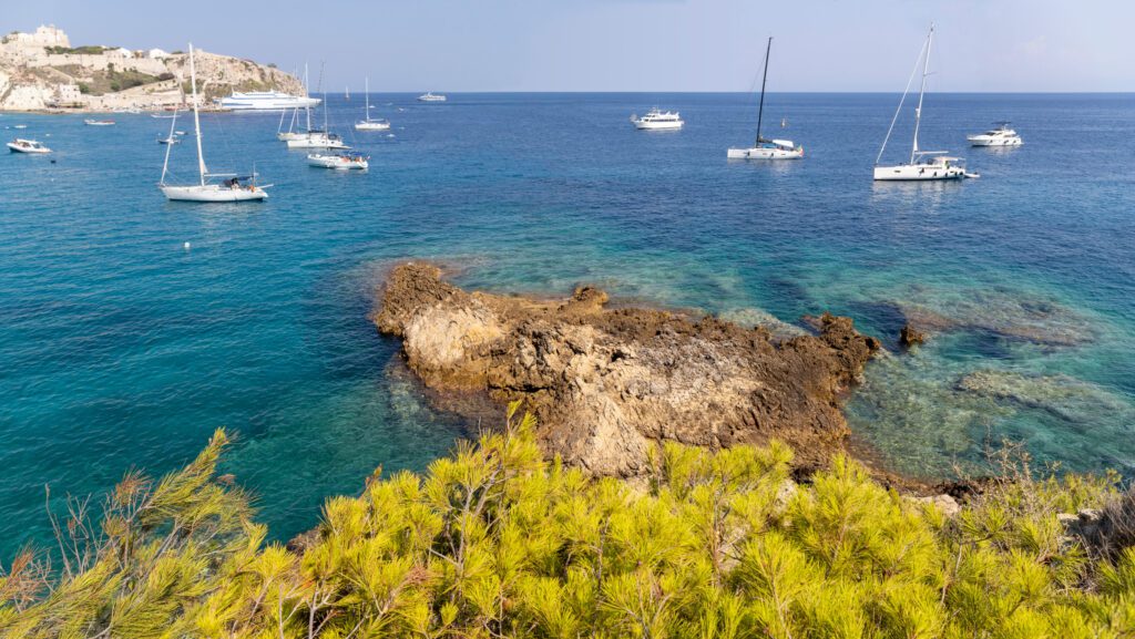 Mare cristallino delle Isole Tremiti, sullo sfondo l’isola di San Nicola