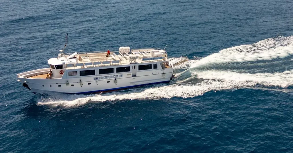 Collegamenti giornalieri da e per l’isola di Procida, Pozzuoli e Ischia.